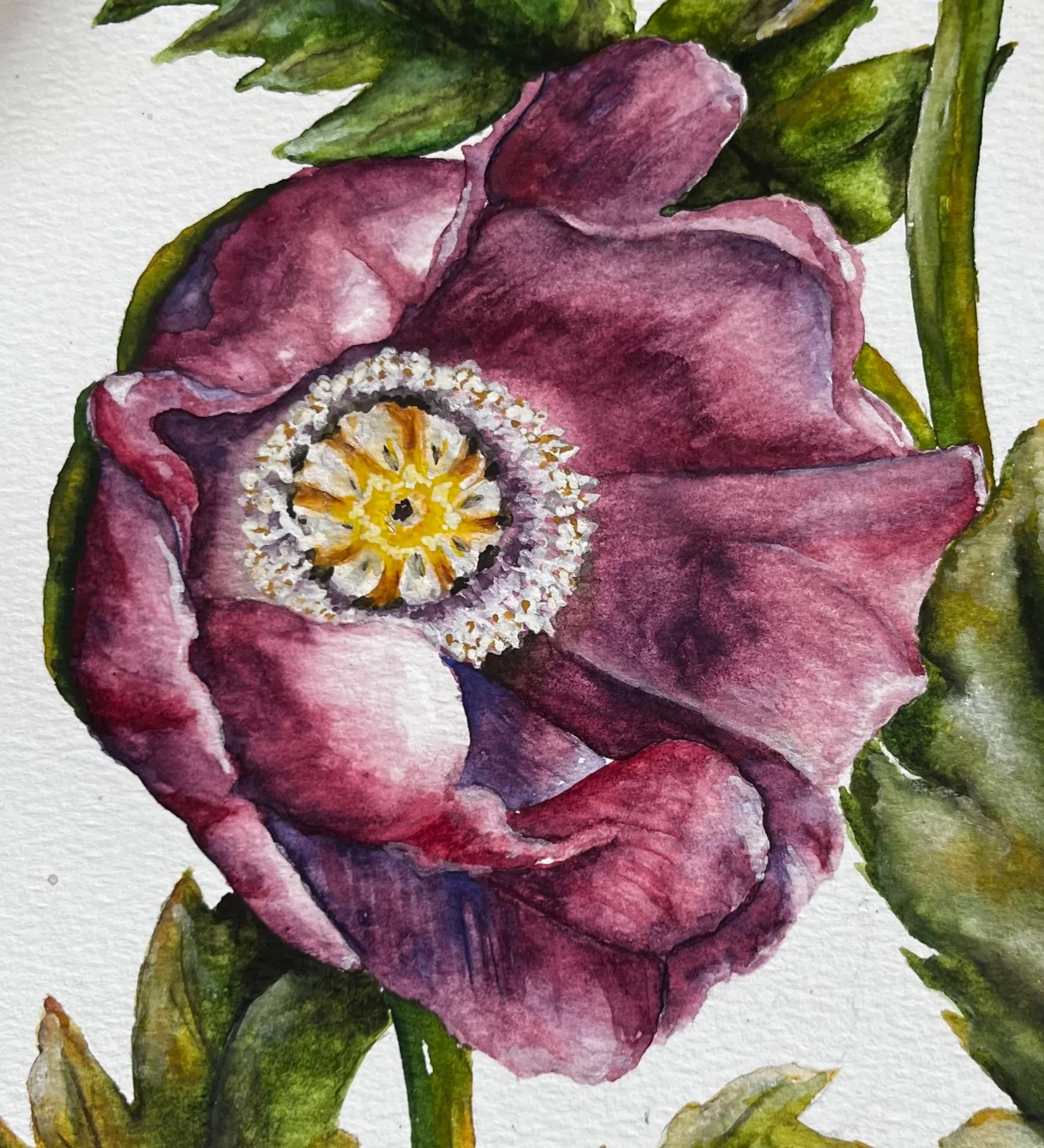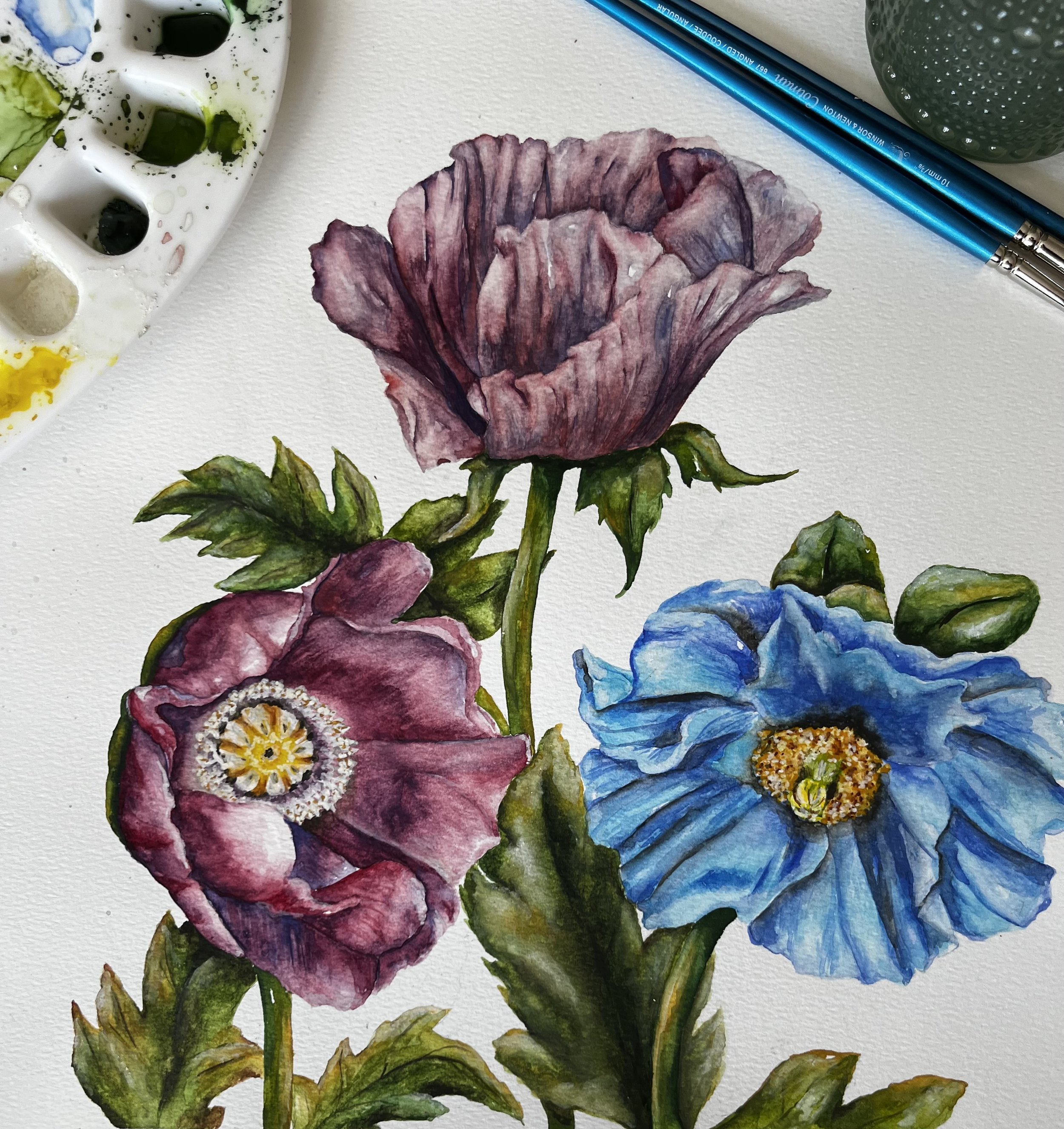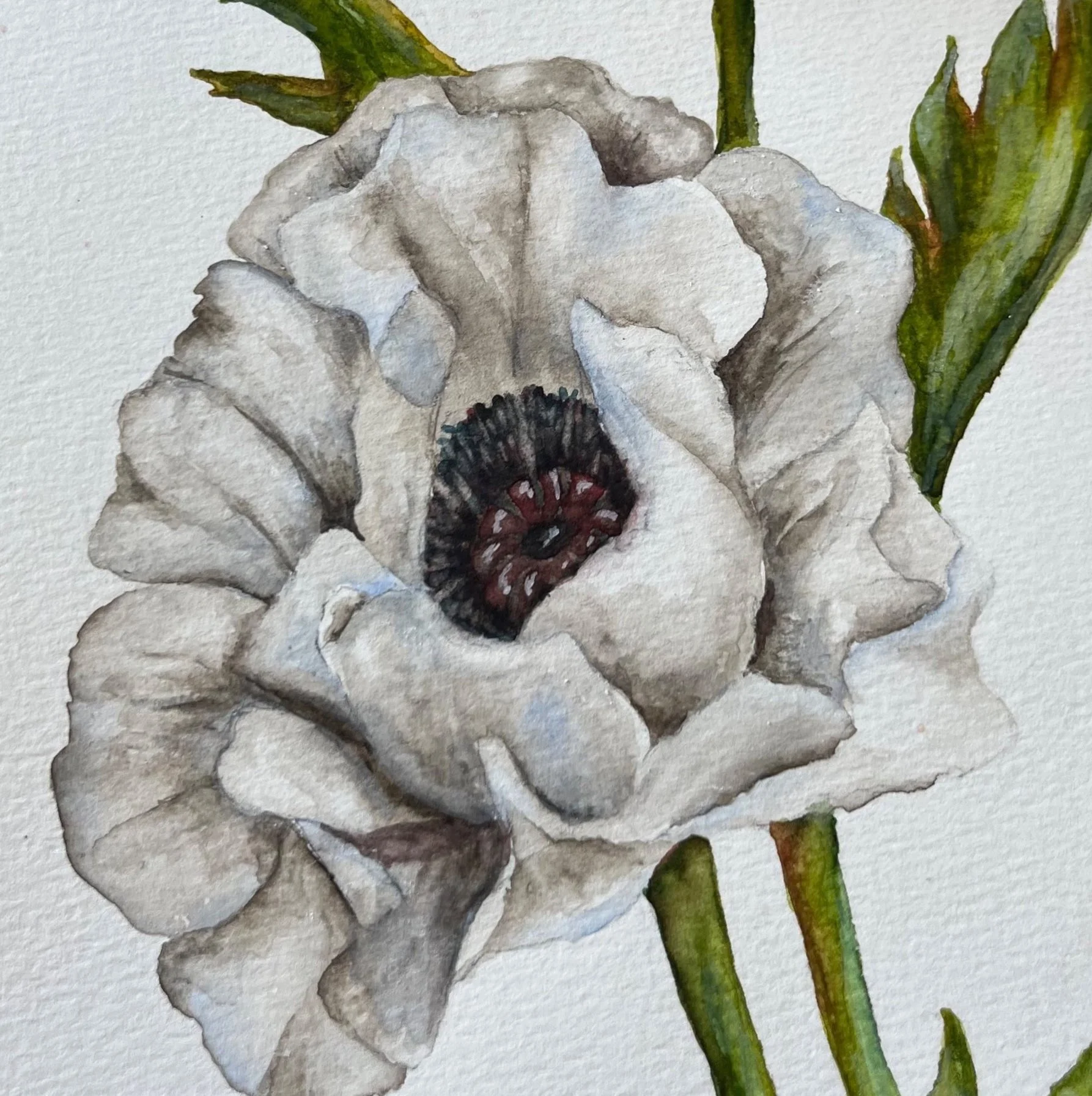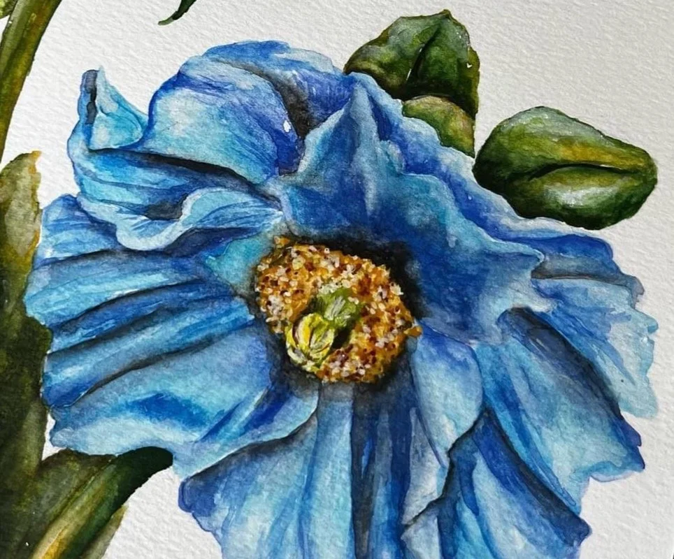 Winter Blues Poppy. Watercolor on paper.