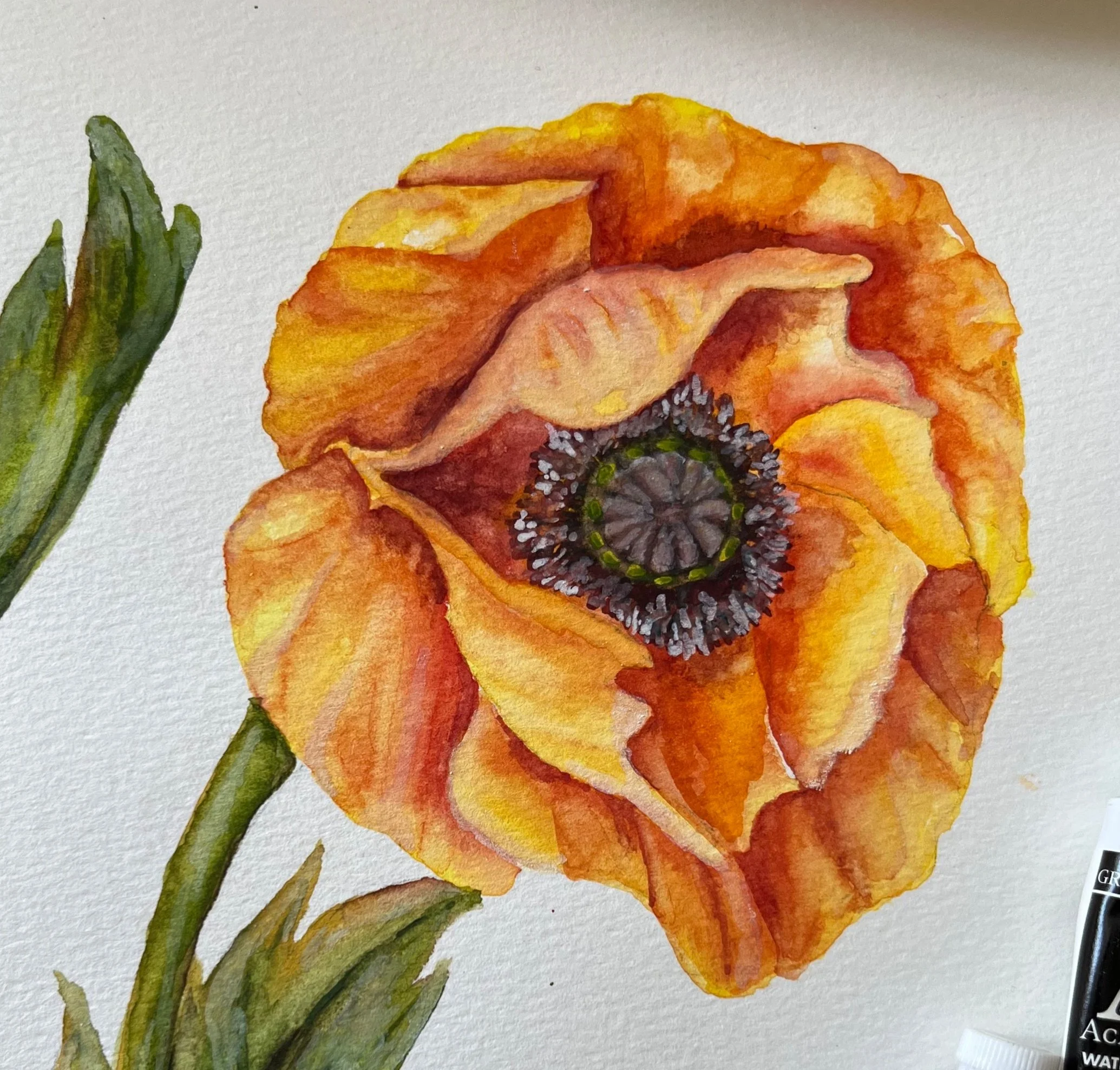 Scarlet Poppy. Watercolor on paper.