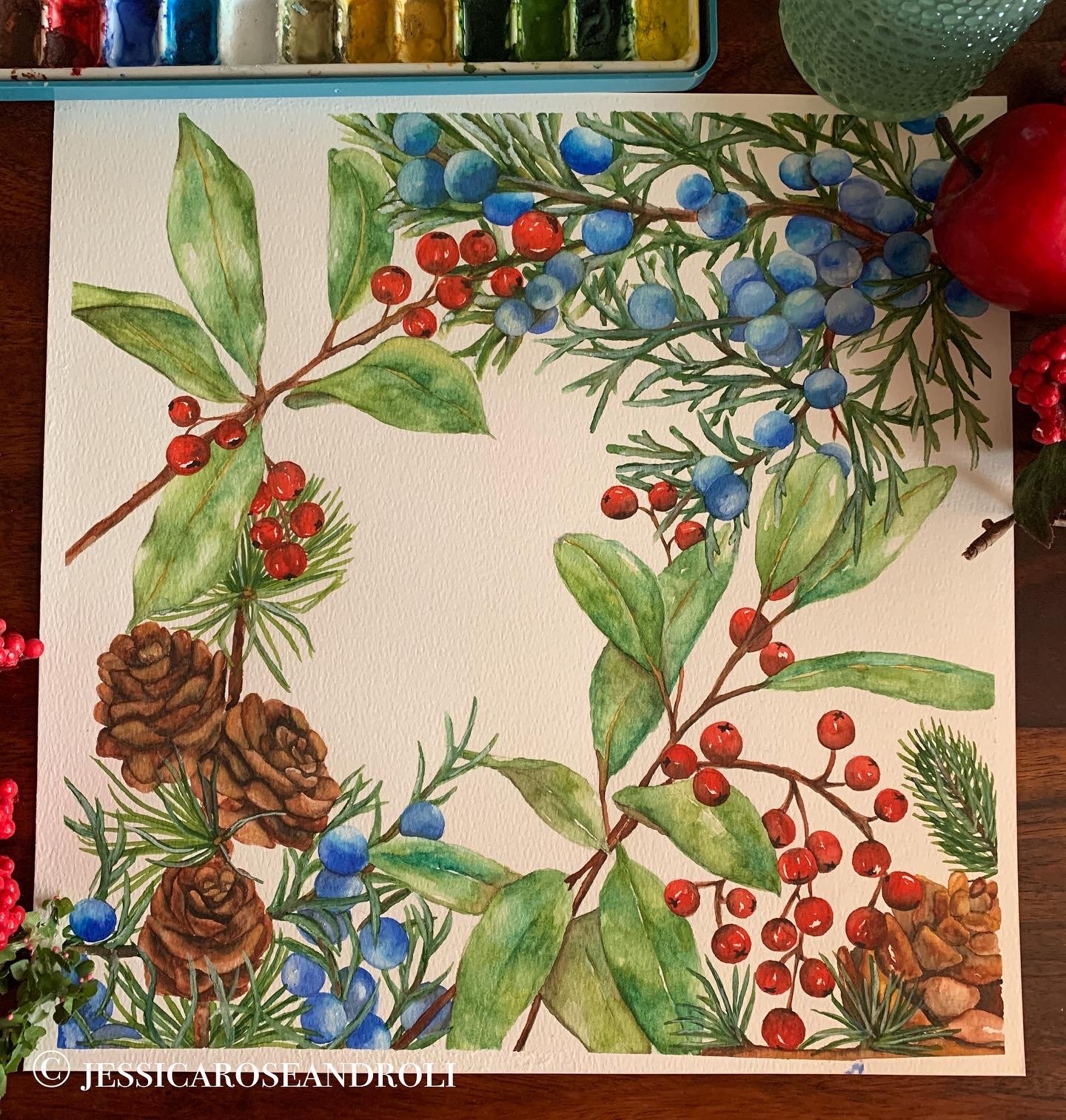 Holly Berries. Watercolor on paper.